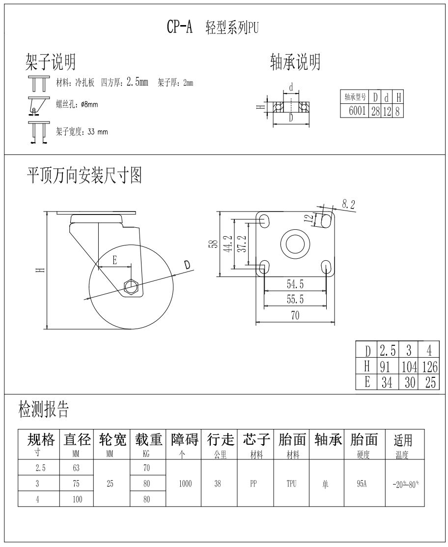 輕型腳輪-CP-A2.5-2521萬向TPU